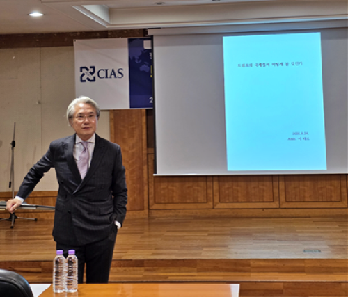 우리 대학 국제지역연구센터 HK+국가전략사업단(단장 강준영, 이하 사업단)은 10월 27일(월) 서울캠퍼스 교수회관 2층 강연실에서 2025년 10월 콜로키움을 개최했다. 연사로 초청된 이태로 대사(정치외교 77, 전 슬로바키아 대사 및 전 몽골 대사)는 ‘트럼프의 국제질서 어떻게 볼 것인가?’라는 주제로 강연을 진행했다.